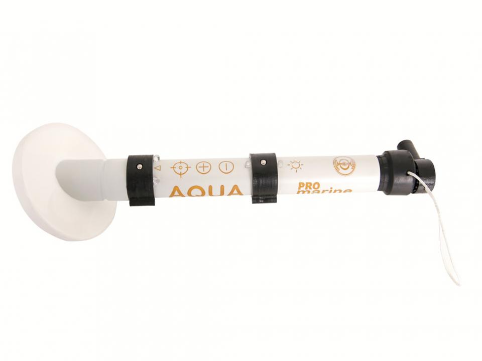 Пользователь включает металлоискатель AQUAmarine поворотом кольца на корпусе прибора. Момент включения отображается вибрацией и светодиодной индикацией. После включения пользователь берет магнитный стилус и уменьшает чувствительность до минимума. Затем погружает прибор в воду и подносит к грунту, если прибор не реагирует на грунт, пользователь увеличивает чувствительность и повторяет операцию. Как только пользователь достигнет чувствительности, при которой прибор начал реагировать на грунт, следует уменьшить чувствительность на один пункт и приступить к поиску. При правильной настройке на грунт прибор не дает ложных сигналов на грунт и имеет наибольшую чувствительность по глубине для выбранного грунта. При работе в условиях плохой видимости поворотом второго кольца на корпусе прибора пользователь может включить и выбрать режим работы фонаря. При обнаружении объекта пользователь с помощью прибора определяет его точное местоположение в грунте и приступает к извлечению, если объект мелкий и ферромагнитный пользователь может использовать поисковый магнит (магнитный стилус) для примагничивания найденного объекта. Если объект мелкий и неферромагнитный в выкопанном грунте его проще обнаружить, сканируя грунт торцевой частью катушки.